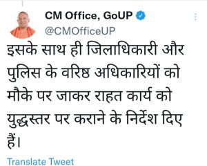 “इसके साथ ही जिलाधिकारी और पुलिस के वरिष्ठ अधिकारियों को मौके पर जाकर राहत कार्य को युद्धस्तर पर कराने के निर्देश दिए हैं”।