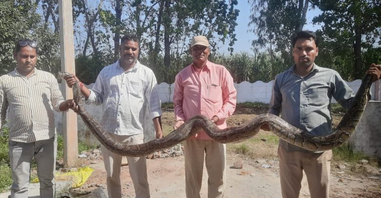 ग्रामीण इलाके में अजगर से मच गया हड़कंप, वन विभाग टीम ने रेस्क्यू कर अजगर को पकड़ा